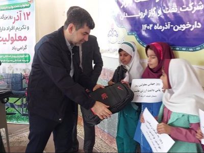 توزیع بسته های نوشت افزار توسط شرکت نفت و گاز اروندان به دانش آموزان شهر دارخوین