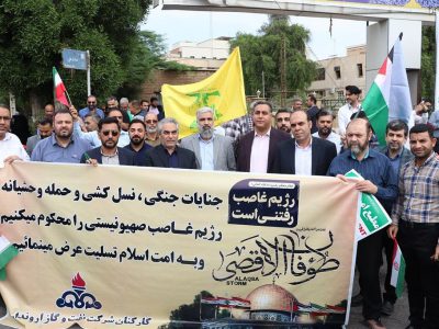 حضور مدیرعامل و کارکنان شرکت نفت و گاز اروندان در اجتماع بزرگ حمایت از مردم غزه در استان خوزستان ۱۴۰۲-۰۸-۰۳ 2 دقیقه خواندن 0 دیدگاه .