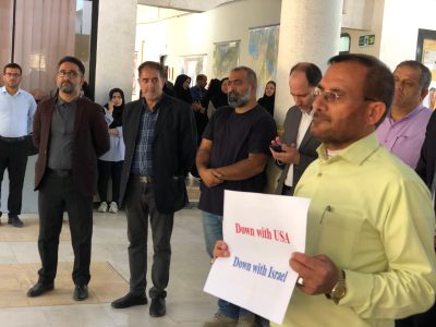 دانشجویان و اساتید دانشگاه آزاد اسلامی شوشتر تجمعی را در حمایت از خیزش سراسری دانشگاههای آمریکا برگزار کردند.