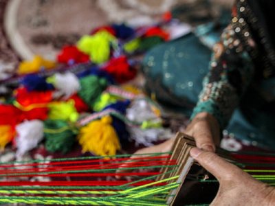 یکی از صنایعدستی تزیینی باستانی عشایر بختیاری شیر دنگ بافی است که توسط زنان روستایی و عشایری بافته میشود.