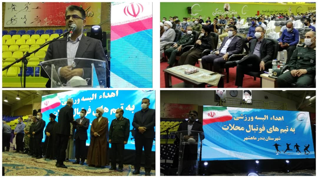 مراسم اهدا البسه ورزشی به تیم های محلات شهرستان بندر ماهشهر با حضور فرماندار و مدیران محلی در سالن ورزشی بعثت شهرستان برگزار گردید.